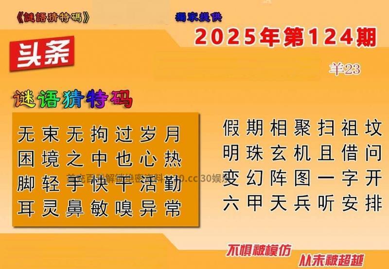 124期六合头条【解迷语猜特码】 无束无拘过岁月 困境之中也心热 脚轻手快干活勤 耳灵鼻敏嗅异常 解译:鼠兼具快速反应、环境适应力及细节洞察力,在十二生肖中独有该特质组合 九肖:牛蛇鼠狗羊鸡猪龙兔 六肖:牛蛇鼠狗羊鸡 三肖:牛蛇鼠 一肖:牛 |